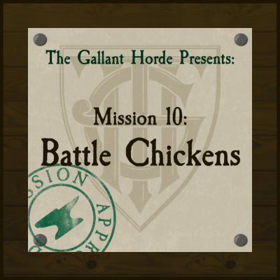 A quiet meal at the Anvil gets raucous when a goblins comes in yelling about Battle Chickens! The Horde must retrieve and capture these chickens who appear to be armoured and armed with rocket launchers.